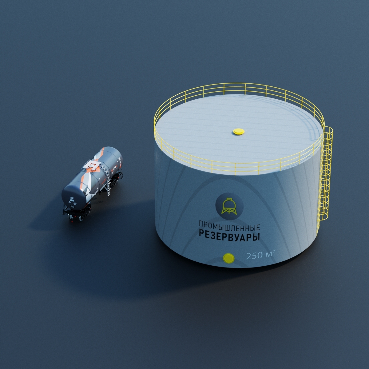 Вертикальный резервуар 250 используется в нефтегазовой промышленности для хранения нефти, мазута или иных легковоспламеняющихся веществ. За счет того, что вещества находятся в вертикальной емкости, минимизируется риск испарения и нарушения химического состава веществ.